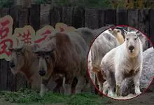 羚牛,偶蹄目牛科羚牛属哺乳动物,俗称扭角羚、野山牛、盘羊。其体形粗壮。尾短。吻鼻部隆起且裸露。前额隆起,毛短而蓬松。角基粗,由头顶长出后先向上升起,又突然翻转,靠近头部,复向外伸,然后又向后弯转,…全部>>