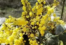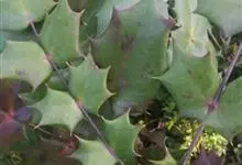 十大功劳 Fedde),小檗科十大功劳属常绿灌木植物。叶子较大且较多,呈椭圆形,绿色,表面光滑无毛,叶柄较长;花朵较小,呈多边形,黄色,花瓣对称分布,表面有绒毛;果实呈圆形,褐色,…全部>>