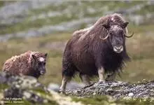 麝牛,是偶蹄目牛科麝牛属哺乳动物。麝牛体型大,但低矮粗壮,头大,吻部宽,眼小;雌雄均具角,四肢短粗,蹄宽大;毛被厚,极耐寒,尾短。雄麝牛在发情时会散发出一种类似麝香的气味,又称麝香牛。…全部>>
