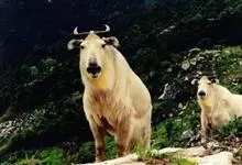 羚牛,偶蹄目牛科羚牛属哺乳动物,俗称扭角羚、野山牛、盘羊。其体形粗壮。尾短。吻鼻部隆起且裸露。前额隆起,毛短而蓬松。角基粗,由头顶长出后先向上升起,又突然翻转,靠近头部,复向外伸,然后又向后弯转,…全部>>