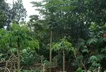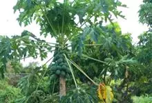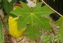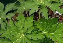 番木瓜,番木瓜科番木瓜属的常绿软木质小乔木,高达10米,具有乳汁;茎不分枝或有时于损伤处分枝;叶大且聚生于茎顶,近似盾形,叶柄中空;花单性或两性,有些品种雄株偶尔生两性花或雌花,…全部>>