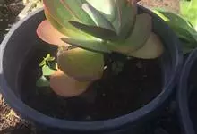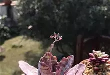 唐印为景天科伽蓝菜属的多年生肉质草本植物。植株中型,株高50厘米,宽20厘米,多分枝;叶片肉质,对生,卵形,全缘,先端钝圆,叶片淡绿色至灰绿色,表面被有厚厚的白粉,光照充足时,叶缘呈红色;圆锥花序,…全部>>