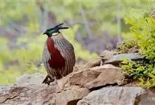 血雉雉科血雉属鸟类,别名血鸡、松花鸡,血雉的雄鸟大覆羽、尾下覆羽、尾上覆羽、脚、头侧、腊膜为红色,故称血雉。其别名甚多,各地皆异。在甘肃,因其胸侧和翅上覆羽沾绿,被称为“绿鸡”;因其羽毛形似柳叶,…全部>>