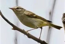 极北柳莺:体长11-13厘米,体小偏灰橄榄色,具明显的黄白色长眉纹,眼先及过眼纹近黑。上体概呈灰橄榄绿色;具甚浅的白色翼斑,大覆羽先端黄白色,形成一道翅上翼斑;中覆羽羽尖成第二道模糊的翼斑;下体白色…全部>>