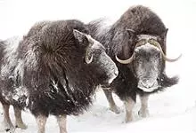 麝牛,是偶蹄目牛科麝牛属哺乳动物。麝牛体型大,但低矮粗壮,头大,吻部宽,眼小;雌雄均具角,四肢短粗,蹄宽大;毛被厚,极耐寒,尾短。雄麝牛在发情时会散发出一种类似麝香的气味,又称麝香牛。…全部>>