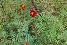 万寿菊是菊科万寿菊属一年生草本植物,别名孔雀菊、缎子花、臭菊花、西番菊、红黄草、小万寿菊、臭芙蓉、孔雀草。万寿菊茎近基部分枝。叶羽状分裂,长5-10厘米,宽4-8厘米,裂片长椭圆形或披针形,具锐齿,…全部>>
