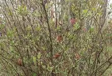 牛筋条,别名:山胡椒、诈死枫、野胡椒、假死柴、冬不落叶。是蔷薇科牛筋条属的植物,常绿灌木至小乔木,高2-4米;枝条丛生,小枝幼时密被黄白色绒毛,老时灰褐色,无毛;树皮光滑,暗灰色,密被皮孔。…全部>>