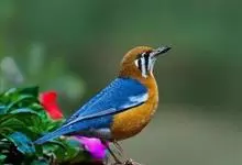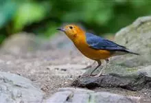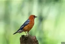 橙头地鸫是鸫科、地鸫属中型鸟类,体长18-22厘米。整个头、颈和下体橙栗色,其余上体包括两翅和尾蓝灰色或橄榄灰色,翅上多具白色翅斑。虹膜褐色或棕褐色,嘴黑褐色或黑色,脚橙黄色或肉黄色。特征极明显。…全部>>
