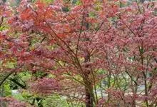 红枫,园艺种,槭树科槭属落叶小乔木,高5~8 m;树冠伞形,枝条开张,细弱。单叶对生,近圆形,薄纸质,掌状7~9深裂,裂深常为全叶片的1/2~1/3,基部心形,裂片卵状长椭圆形至披针形,先端尖,…全部>>