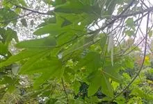 刺楸 Koidz.),五加科刺楸属落叶乔木,高30米。树干通直;树皮纵裂灰黑褐色;叶掌状分裂长圆状卵形;伞形花序,花较小白色或淡黄绿色;果蓝黑色;花期7-8月,果期9-11月。变种有深裂叶刺楸,…全部>>