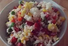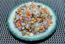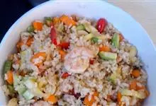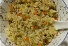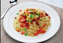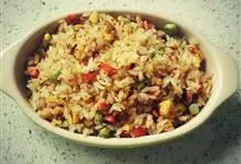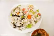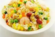 什锦炒饭是一道色香味俱全的名点,以江苏扬州的炒饭最知名。虾仁去泥肠洗净,加料酒、胡椒粉、淀粉上浆。胡萝卜洗净,切小片。蘑菇洗净、切块。将虾仁、豌豆粒、蘑菇倒入沸水锅中,焯烫至断生,捞出沥水。…全部>>