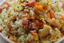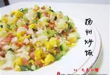 扬州炒饭又名扬州蛋炒饭,是江苏省扬州市的一道传统名菜,属于淮扬菜,其主要食材有米饭、火腿、鸡蛋、虾仁等。扬州炒饭选料严谨、制作精细、加工讲究,而且注重配色。炒制完成后,…全部>>