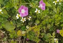 五爪金龙 Sweet),旋花科番薯属多年生缠绕草本植物。茎细长,有细棱;叶片为掌状;花冠紫红色、紫色或淡红色、偶有白色,漏斗状;蒴果近球形。花期5~12月。五爪金龙的叶子类似掌状,有5至7个裂痕,…全部>>
