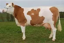 西门塔尔牛是偶蹄目牛科牛属哺乳动物。 体躯长,呈圆筒状,肌肉丰满;头较长,面宽,颈长中等,角较细而向外上方弯曲,尖端稍向上;前躯较后躯发育好,胸深,尻宽平,四肢结实,大腿肌肉发达,乳房发育好。…全部>>