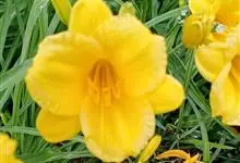 黄花菜 别名金针菜、柠檬萱草等,是阿福花科萱草属的多年生宿根性草本植物。根近肉质,中下部常有纺锤状膨大;叶7~20枚,长50~130cm,宽6~25mm;花葶长短不一,花梗较短,花多朵,…全部>>