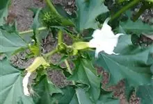 曼陀罗,茄科曼陀罗属一年生大型草本植物,全株光滑。有臭气;叶呈广卯形,边缘具不规则波状浅齿裂;花单生于枝杖间或叶腋,直立,有短梗;花萼是筒状裂片三角形,颜色为白色或淡紫色;果实为蒴果卵状,…全部>>