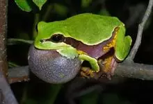 雨蛙,脊椎动物亚门,两栖纲,无尾目,雨蛙科的1属,种类约250种。雨蛙肩带弧胸型,椎体为前凹型。适于树栖,指、趾末端多膨大成吸盘,末两骨节间有1间介软骨,是趋同演化的一个物种。…全部>>