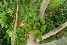 大果榕是桑科榕属的小乔木,株高可达10米;幼枝被柔毛;叶互生,宽卵状心形或近圆形;雄花无梗、匙形、花丝长,雌花生于雌株榕果内,子房白色;榕果簇生于树干基部或老茎短枝上、扁球形或陀螺形,…全部>>