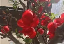 贴梗海棠 Nakai)是蔷薇科、木瓜海棠属植物。落叶灌木,高达2米,枝条直立开展,有刺。叶片卵形至椭圆形,稀长椭圆形,长3-9厘米,宽1.5-5厘米。花先叶开放,3-5朵簇生于二年生老枝上。…全部>>