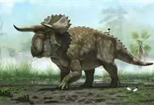 牛角龙是生活在白垩纪晚期的植食性恐龙,距今约7000万年前的北美洲,体长约8米。它有一个巨大的脑袋,脑袋后部还有一个超大头盾,眼睛上面有两只大尖角,…全部>>