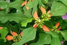 猩猩草:常绿或半常绿灌木,盆栽时株高0.5米-2米,在亚热带地区可长到6米以上。茎直立而光滑,单叶互生,卵状椭圆形至阔披针形,具不规则的深缺刻。长10-15厘米。花小,有蜜腺,排列成密集的伞房花序。…全部>>