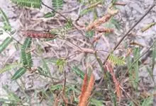 合萌,别名田皂角、水松柏、水槐子、水通草,中药名:梗通草。豆科一年生草本或亚灌木状植物,茎直立,叶对生,总状花序,腋生,花萼膜质,花冠淡黄色,子房扁平,线形。种子黑棕色,肾形,花果期7~10月。…全部>>
