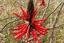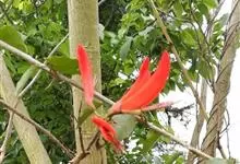 鹦哥花是豆科刺桐属植物,小乔木或乔木。树干和枝条具皮刺。羽状复叶,叶柄平滑,顶生小叶近肾形,侧生小叶斜宽心形,两面无毛。总状花序生于先端叶腋,花鲜红色,大,具花梗,苞片单生,卵形,花萼陀螺形,花冠红…全部>>