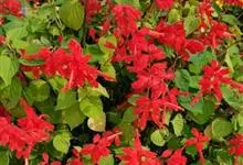 一串红,又称爆仗红、象牙红,为唇形科鼠尾草属植物。花序修长,色红鲜艳,花期又长,适应性强,为中国城市和园林中最普遍栽培的草本花卉。原产巴西、南美洲。喜温暖和阳光充足环境。不耐寒,耐半阴,忌霜雪和高温,…全部>>