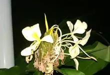 姜花又名野姜花。是姜科姜花属的多年生草本植物,茎高1-2米;叶片长圆状披针形或披针形,叶面光滑,叶背被短柔毛;穗状花序顶生,椭圆形,花芬芳,白色;蒴果卵状三棱形,微黄绿色;种子鲜红色,具橘红色的假种皮。…全部>>
