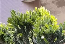 金刚纂,是大戟科大戟属的肉质灌木状小乔木。茎圆柱状,上部多分枝,叶片互生,少而稀疏,顶端钝圆,基部渐狭;花序二歧状腋生,苞叶膜质,总苞阔钟状,裂片半圆形,边缘具缘毛,雄花多枚;花期6-9月。…全部>>