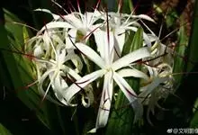 文殊兰 Baker)是石蒜科文殊兰属的多年生粗壮草本。鳞茎长圆柱形;叶深绿色,线状披针形,边缘波状,先端渐尖具尖头;花茎直立,与叶近等长;总苞片披针形;小包片线形;雄蕊淡红色,花药线形,…全部>>