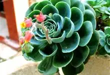 蓝石莲是景天科、拟石莲花属的多肉植物。茎部粗壮,成熟植株茎部木质化。叶片莲座型密集排列,株径不会很大,叶片相对较薄,常年绿色,表面布有白色粉末,中部凹陷,呈倒水滴状。叶尖较尖,叶缘光滑无褶皱,…全部>>