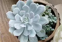 蓝石莲是景天科、拟石莲花属的多肉植物。茎部粗壮,成熟植株茎部木质化。叶片莲座型密集排列,株径不会很大,叶片相对较薄,常年绿色,表面布有白色粉末,中部凹陷,呈倒水滴状。叶尖较尖,叶缘光滑无褶皱,…全部>>