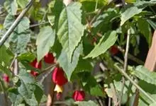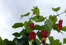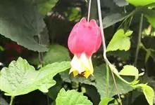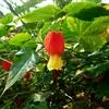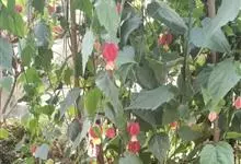 红萼苘麻是锦葵科、苘麻属常绿软木质灌木,叶绿色,长5-10厘米,心形,叶端尖,叶缘有钝锯齿,有时分裂,有细细的叶柄;叶互生,掌状叶脉;花单生于叶腋,具长梗,下垂;花萼红色,半套着大约4厘米长的花瓣,…全部>>
