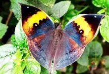 枯叶蛱蝶,又名木叶蝶、树叶蝶等,属于蛱蝶科。翅正面黑褐色,具深蓝色光泽,前翅顶角尖出,顶区有1枚小白点,中部有1条倾斜的橙色斑带,从前缘延伸至Cu室外缘,u室中部有1枚黑色圆斑,…全部>>