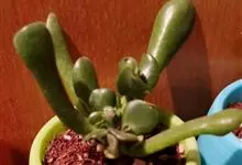 筒叶花月,是景天科青锁龙属的多年生草本植物。植株多分株,灌木状,茎较粗壮,圆柱形,表皮灰褐色;叶片肉质,互生,呈圆筒状,簇生于茎或分枝顶端,叶端呈斜截形,截面为椭圆形;花呈星状,淡白色;花期秋季。…全部>>