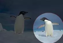 阿德利企鹅在企鹅家族中属中、小型种类,体长72-76厘米,和许多种类企鹅一样,雌鸟和雄鸟同形同色,从外形难以辨认。眼圈为白色,头部呈蓝绿色,嘴为黑色,嘴角有细长羽毛。羽毛由黑、白两色组成,…全部>>