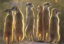 狐獴,是食肉目獴科狐獴属小型哺乳动物。狐獴的眼睛周围有黑色块,新月型的耳朵,修长的躯干和四肢,有着有力、弯曲的爪子,尾巴长细并尖尖延伸到端点,在末端的端点都为黑色。直立时狐獴会用尾巴支撑来保持平衡。…全部>>