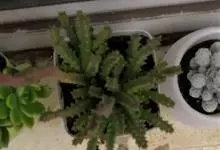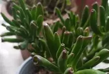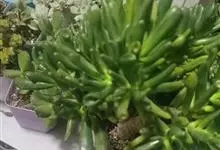 筒叶花月,是景天科青锁龙属的多年生草本植物。植株多分株,灌木状,茎较粗壮,圆柱形,表皮灰褐色;叶片肉质,互生,呈圆筒状,簇生于茎或分枝顶端,叶端呈斜截形,截面为椭圆形;花呈星状,淡白色;花期秋季。…全部>>