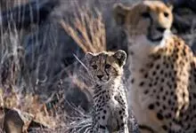 猎豹是食肉目猫科猎豹属哺乳动物,又称印度豹。胸腔深,腰细窄。粗糙的短毛为淡黄色,带黑色圆斑;腹部为白色,没有斑点,但尾巴有斑纹,到末梢共四到六圈黑色环纹。雄性比雌性大。寿命一般是6.9年。…全部>>
