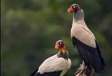 王鹫:是美洲鹫科、王鹫属大型食腐鸟类。体型很大,体长约78厘米。头部裸露,色彩极鲜艳醒目。嗉囊发达。尾短。它的头部及颈部没有羽毛,皮肤颜色有异,包括黄色、橙色、蓝色、紫色及红色。…全部>>