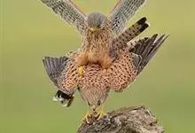 红隼:是隼科、隼属的小型猛禽之一。体重173-335克,体长305-360毫米。翅狭长而尖,尾亦较长,外形和共同爪隼非常相似。雄鸟头蓝灰色,背和翅上覆羽砖红色,具三角形黑斑;腰、尾上覆羽和尾羽蓝灰色,…全部>>