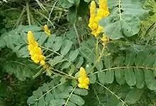 翅荚决明 Roxb.)是豆科决明属灌木植物,高3米。羽状复叶,在叶柄和叶轴上有窄翅;小叶倒卵状长圆形,先端圆钝,基部斜截形;总状花序顶生和腋生;荚果带形,…全部>>
