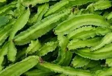 四棱豆 DC.)是豆科四棱豆属一年生或多年生攀援草本植物。茎长2-3米,有块根,叶柄较长,小叶卵状三角形;花序腋生,花瓣为浅蓝色;荚果四棱状,为黄绿或绿色,有时具有红色斑点,有锯齿边缘;种子8-17个,…全部>>