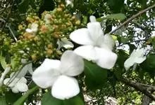 琼花是荚蒾科荚蒾属落叶或半常绿灌木植物,又名扬州琼花、蝴蝶木、八仙花、聚八仙、蝴蝶戏珠花、毛琼花。琼花高达4米;树皮灰褐色或灰白色。叶纸质,卵形至椭圆形或卵状矩圆形。聚伞花序,花冠白色,辐状。…全部>>