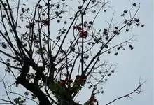 刺桐,是豆科刺桐属乔木植物。树皮灰褐色;分枝有圆锥形黑色皮刺;叶柄无毛,无刺;花密集,成对着生;花梗被茸毛,花冠红色;果实为圆柱形,微弯曲;花期3月;果期8月。刺桐因枝干间有圆锥形棘刺,故名。…全部>>