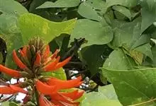 鹦哥花是豆科刺桐属植物,小乔木或乔木。树干和枝条具皮刺。羽状复叶,叶柄平滑,顶生小叶近肾形,侧生小叶斜宽心形,两面无毛。总状花序生于先端叶腋,花鲜红色,大,具花梗,苞片单生,卵形,花萼陀螺形,花冠红…全部>>