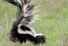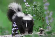 臭鼬是食肉目鼬科鼬属哺乳动物。体型与家猫相仿。全身被毛为黑色,身体两边有白色条纹;前额有一条较窄的白色条纹;尾巴呈丛毛状,有时尖端为白色。寿命为7—8年。臭鼬广泛分布在北美洲墨西哥以北的广大地区,…全部>>