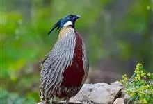 血雉雉科血雉属鸟类,别名血鸡、松花鸡,血雉的雄鸟大覆羽、尾下覆羽、尾上覆羽、脚、头侧、腊膜为红色,故称血雉。其别名甚多,各地皆异。在甘肃,因其胸侧和翅上覆羽沾绿,被称为“绿鸡”;因其羽毛形似柳叶,…全部>>