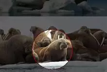 海象是食肉目海象科哺乳动物,海象科只有一种海象,没有亚种。海象身体呈圆筒形,粗壮而肥胖。头部扁平,吻端较钝。前肢较长,五指分得很开;后肢能向前方折曲,可以借以在陆地上爬行,游泳时左右摆动。尾巴很短,…全部>>